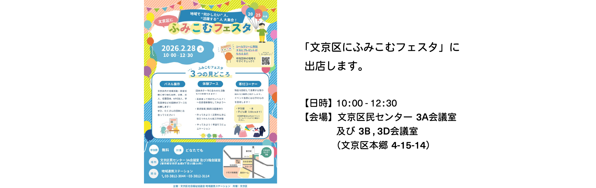 「隣人の日・共創ワークショップ」では、美術や音楽などのワークショップや創作活動、展覧会の企画・運営を通して、年齢・性別・国籍・障がいの有無等に関わらず人と人とが出会い、互いの個性を尊重しながら共に創造する機会を作る活動を行っています。