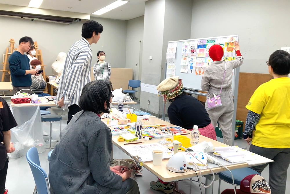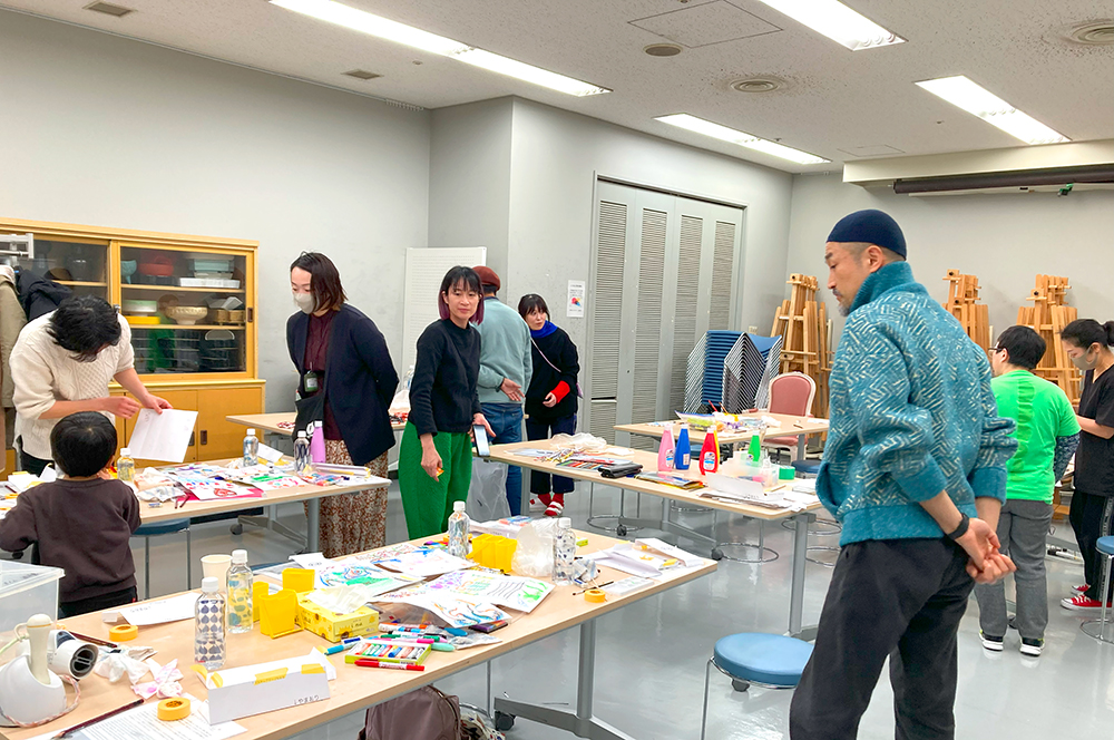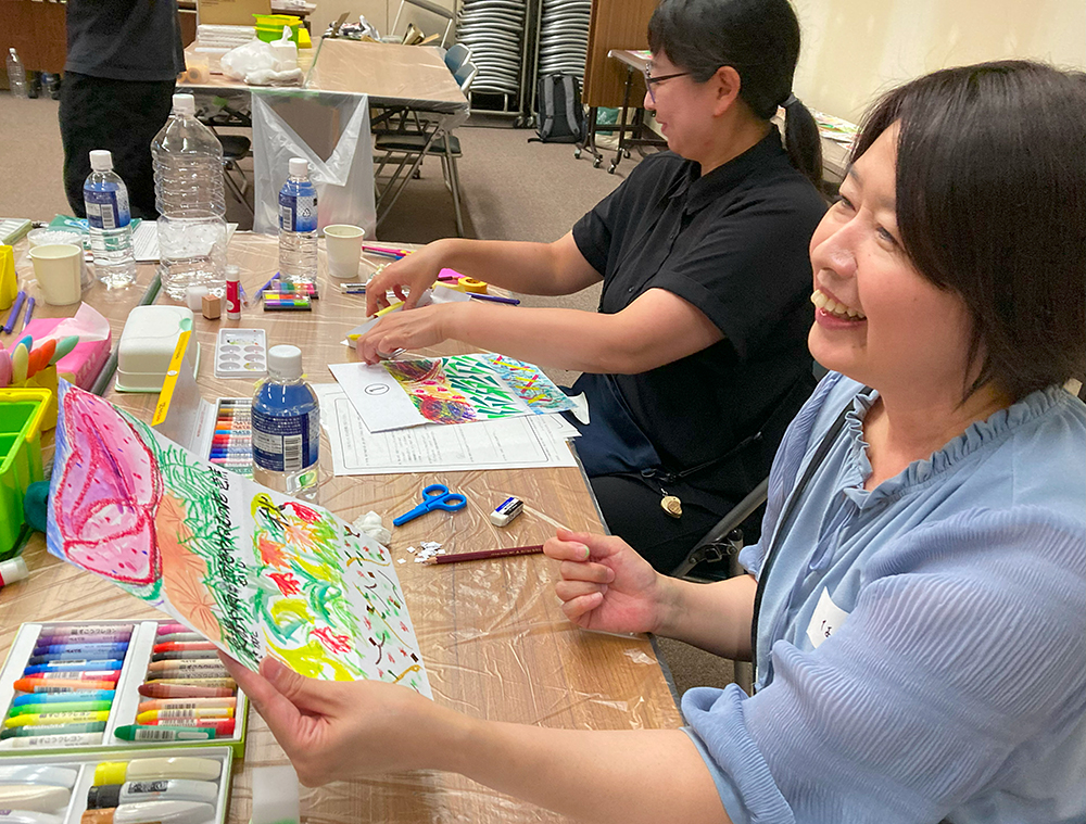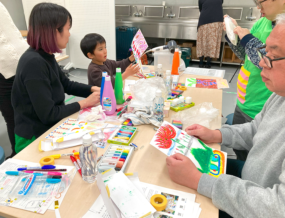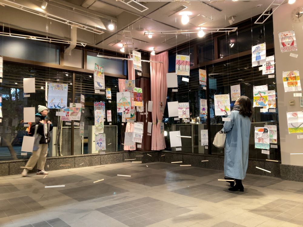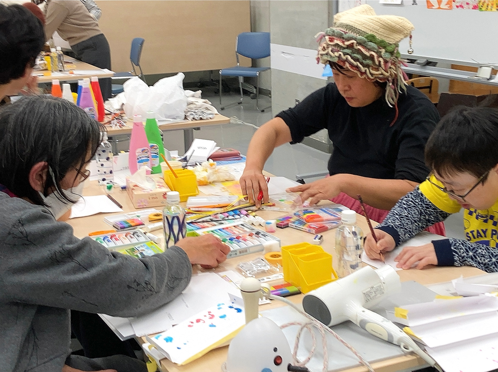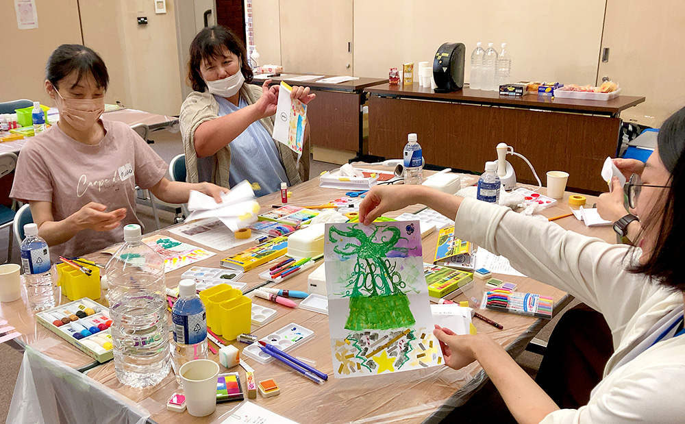 「リレー絵画」ワークショップ、成果展(函館)