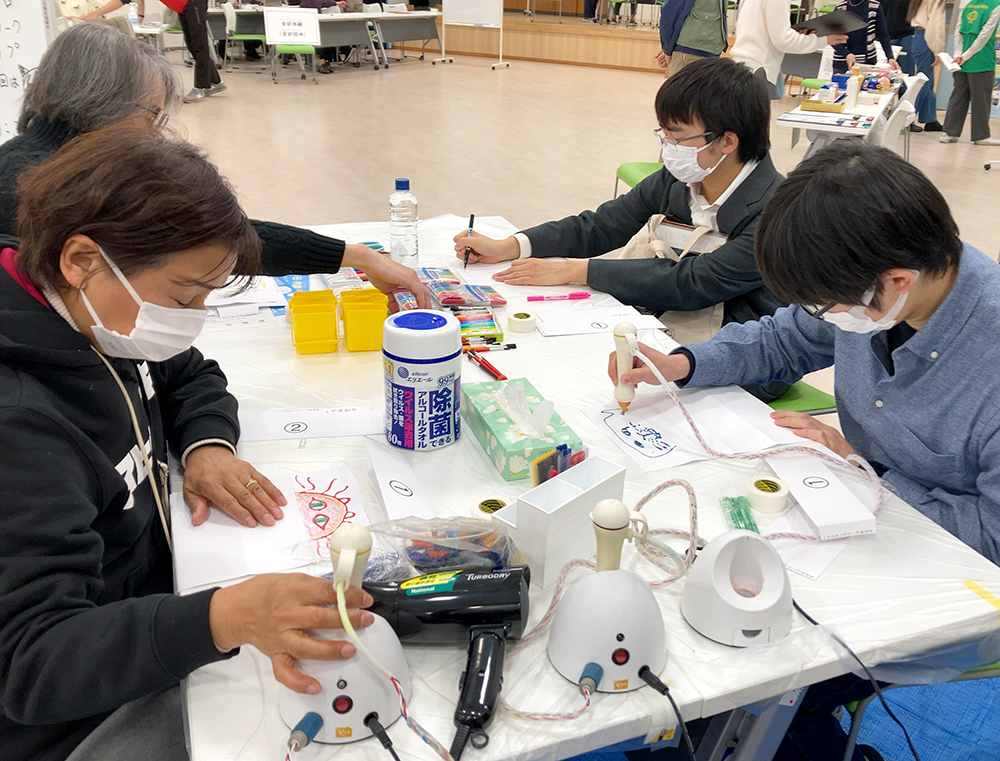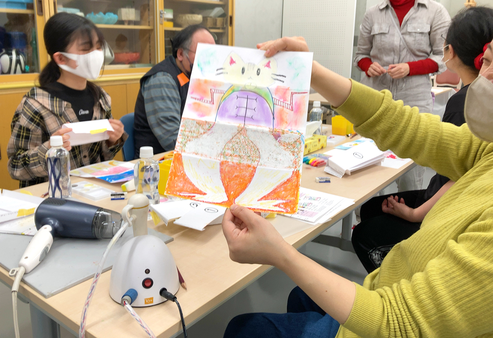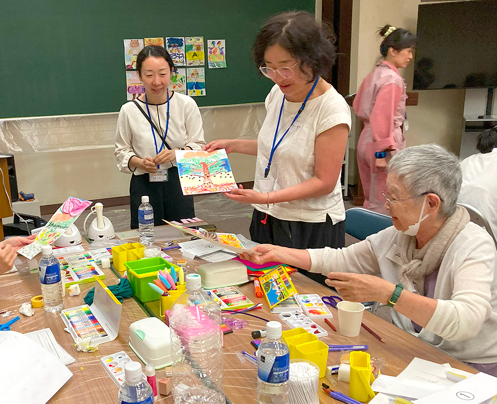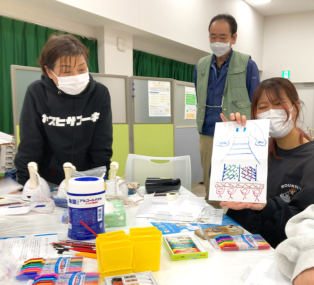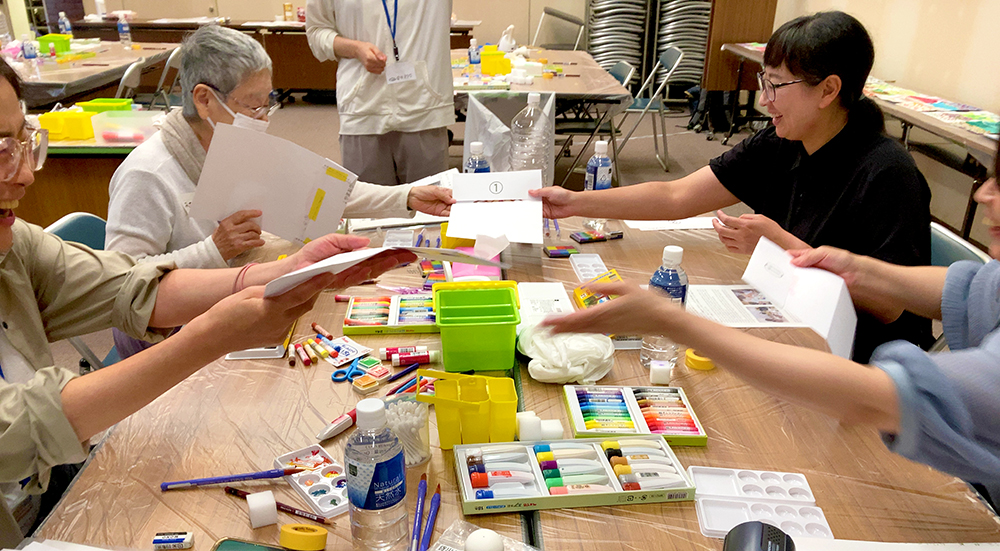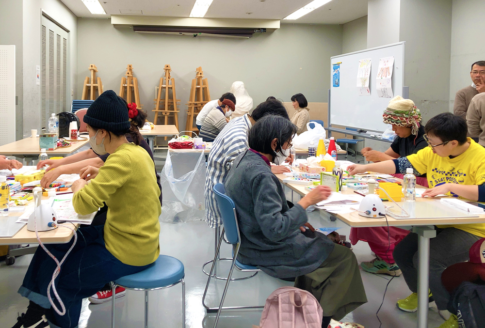 「リレー絵画」ワークショップ、成果展(函館)